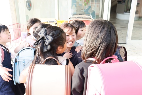 みんなお気に入りのランドセルを背にとってもうれしそう!!