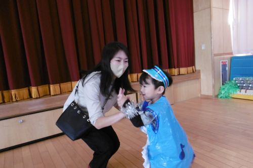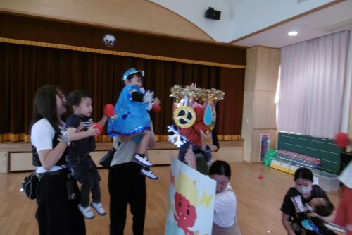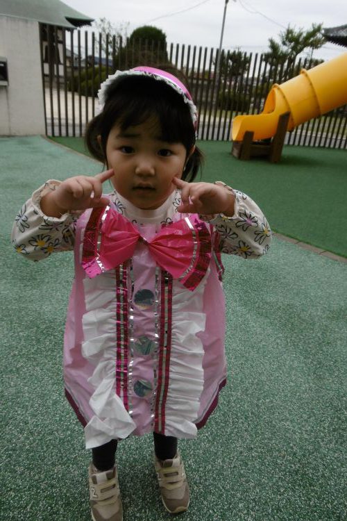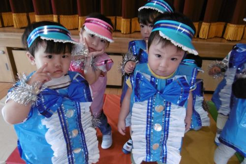可愛い衣装を着て、障害物かけっこ、親子玉入れをしました。