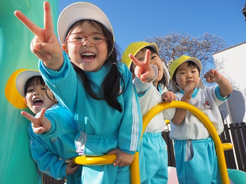 くつをはくと一目散に園庭に向かって走ります。鬼ごっこをしたりかくれんぼをしたり・・・。ほっぺを真っ赤にしながら楽しんでいます。3歳児さんはお砂場も大好き。お店屋さんごっこ、お山づくり。夢中になって遊ぶと時間もあっという間!「お腹すいたー!」と保育室に戻り、お昼もペロリと完食するカリンさんです!