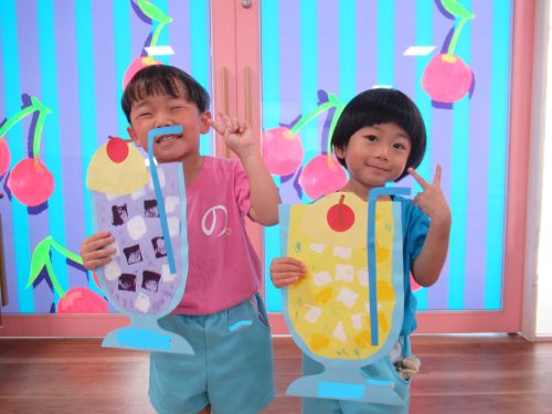 夏の壁面製作では、マーブリングでかき氷を作りました☆彡